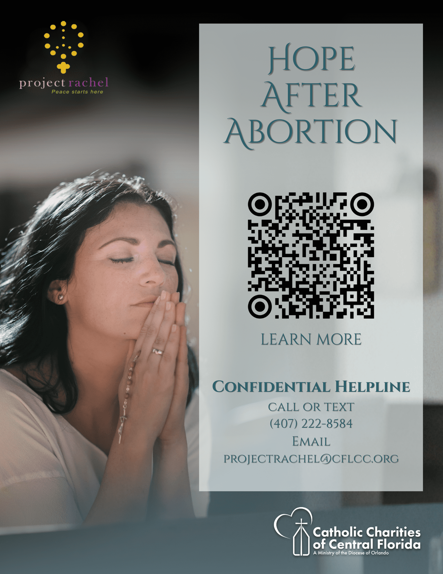“Pastoral care encompasses a broad range of services provided with competence, compassion, and dignity. It includes spiritual assistance and essential material help, and may include supplementary services beyond those available in the community. Providing pastoral care to those in need is a primary way that the Church expresses its love for all God’s children.” U.S. Catholic Bishops, Pastoral Plan for Pro-Life Activities Pro-Life Pregnancy Services Respect for human life compels us to reach out to those with special needs. With the support of the faith community, Catholic organizations and agencies provide pastoral services and care for pregnant women, especially those who are vulnerable to abortion and who would otherwise find it difficult or impossible to obtain high-quality medical care. Resources Local Catholic Charities Adoption Services Catholic Charities Adoption Services in the dioceses of St. Augustine and St. Petersburg offers services in more than 30 counties across Central and Northern Florida, supporting all members of the adoption triad, including birth parents, adoptive families, and adopted individuals. Florida Confidential Helpline Florida confidential helpline: 1-877-767-BABY (2229) Her PLAN (Her Pregnancy and Life Assistance Network) Her PLAN helps build a culture of life by connecting women and families with comprehensive, life-affirming support. The network fosters collaboration among medical, social, and material assistance providers to ensure mothers and their children receive the care they need to thrive. Her PLAN has located, vetted, and organized a broad network of trusted, life-affirming service providers across most states. Their user-friendly directory is organized into seven categories of care, including medical services, housing, mentorship, and more. Click here to learn more about their categories of care. Use the directory to find support for yourself, a client, a friend, or a loved one. Discover how Her PLAN can help connect you with real, practical resources—and be part of strengthening the life-affirming safety net in our communities. Natural Family Planning (NFP) The Catholic Church supports the methods of Natural Family Planning (NFP) because they respect God’s design for married love. In fact, NFP represents the only authentic approach to family planning available to husbands and wives because these methods can be used to both attempt or avoid pregnancy. For Natural Family Planning (NFP) diocesan resources and information, click here. Pregnancy Resources Pregnancy Centers can be found all over Florida and are staffed with compassionate professionals who provide counseling, training, and free resources. For additional pregnancy centers vetted by the Culture of Life office, click here. National A Safe Haven for Newborns A Safe Haven for Newborns is dedicated to saving the precious lives of newborns from the dangers of abandonment and assisting pregnant girls and women in crisis. National Helpline: 1-844-767-2229. USCCB – Natural Family Planning (NFP) Natural Family Planning helps married couples to deepen conjugal love and achieve responsible parenthood as part of the Church’s total pastoral ministry to Catholic spouses. Infertility Ministry | Springs in the Desert Springs in the Desert is a Catholic ministry that offers spiritual and emotional support to those facing infertility. Rooted in Church teaching, it fosters community, healing, and a deeper relationship with God, while also equipping pastoral and medical professionals to better serve those affected. Be Not Afraid | Prenatal Diagnosis | Perinatal Hospice Be Not Afraid (BNA) is a private, non-profit organization dedicated to supporting parents who choose to carry to term following a prenatal diagnosis. Their staff and volunteers work to build relationships of trust while addressing both emotional and practical needs—beginning at the time of diagnosis, continuing through pregnancy and birth, and extending into the postpartum period for up to one year. Walking with Moms in Need Walking With Moms in Need (WWMIN) is a USCCB initiative for Catholic parishes and communities to support and “walk in the shoes” of local pregnant and parenting women in need. Everyone should know how to help moms in difficult circumstances. While not trying to turn Catholic parishes into pregnancy centers, we can support local pregnancy centers where they exist, and we can also find and share other resources with pregnant and parenting women. For a complete listing of parishes in the Diocese of Orlando who have an active WWMIN ministry in English and Spanish, click here. Post- Abortion Healing and Reconciliation “The Church offers reconciliation as well as spiritual and psychological care for those suffering from abortion’s aftermath primarily through diocesan-based programs, most often called Project Rachel. Such ministries utilize specially trained priests and professional counselors who provide one-on-one care. Other post-abortion ministries that involve support groups and retreats are also available in many areas. Every church-sponsored program and identifiably Catholic organization and agency should know where to refer those in need of post-abortion healing. Special resources to assist priests in this ministry are available from the Secretariat for Pro-Life Activities and from many diocesan pro-life offices.” —U.S. Catholic Bishops, Pastoral Plan for Pro-Life Activities Jesus Keeps on Loving You, No Matter What Bishop Daniel Thomas of Toledo, Chairman of the USCCB’s Committee on Pro-Life Activities, has shared this message on healing after abortion in preparation for Lent. Used with permission. Copyright © 2025, United States Conference of Catholic Bishops, Washington, D.C. All rights reserved. National – Project Rachel Project Rachel offers post-abortion counseling for both women and men who have been emotionally, psychologically, and spiritually impacted by an abortion. Call 1-888-